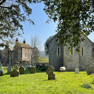 We went over to Arundel early today to do a circular walk. It was a lovely walk over the South Downs, about 13km and quite hilly!! It is a besutiful town, we had a good look round the shops and found a map shop where the owner regularly stays in Landmark Trust properties. It reminded us to look at them again as we have had great holidays with them in the past. We also bought a Ravilious picture of a greenhouse from him as well! On our walk we found a churchyard where they were using sheep to mow the graveyard, great idea!! When we got back we started up the bbq and cooked our tomahawk steak. We are eating very well here!!